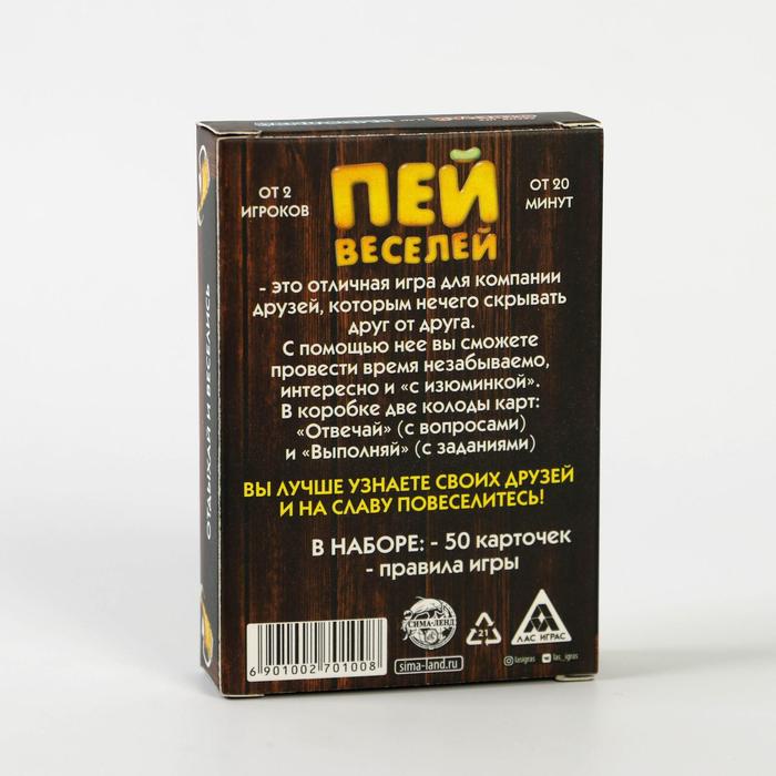 Купить игра для компании "пей веселей" 50 карт от 180 руб. с доставкой до пункта выдачи в Острове. Интернет магазин ДекаМаркет. Оплата при получении.